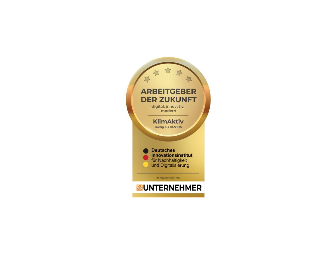 Das Deutsche Innovationsinstitut für Nachhaltigkeit und Digitalisierung (DIND) zeichnet KlimAktiv als Arbeitgeber der Zukunft aus.