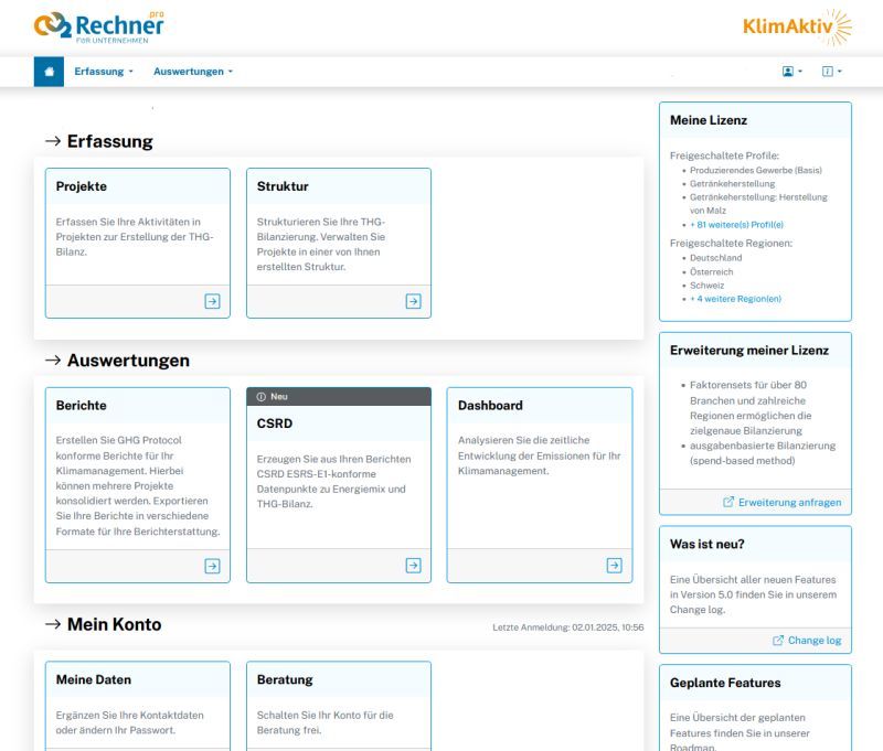 Der CO2-Rechner.PRO 5.0 bietet neue Features in der Bedienbarkeit und Berichterstattung.