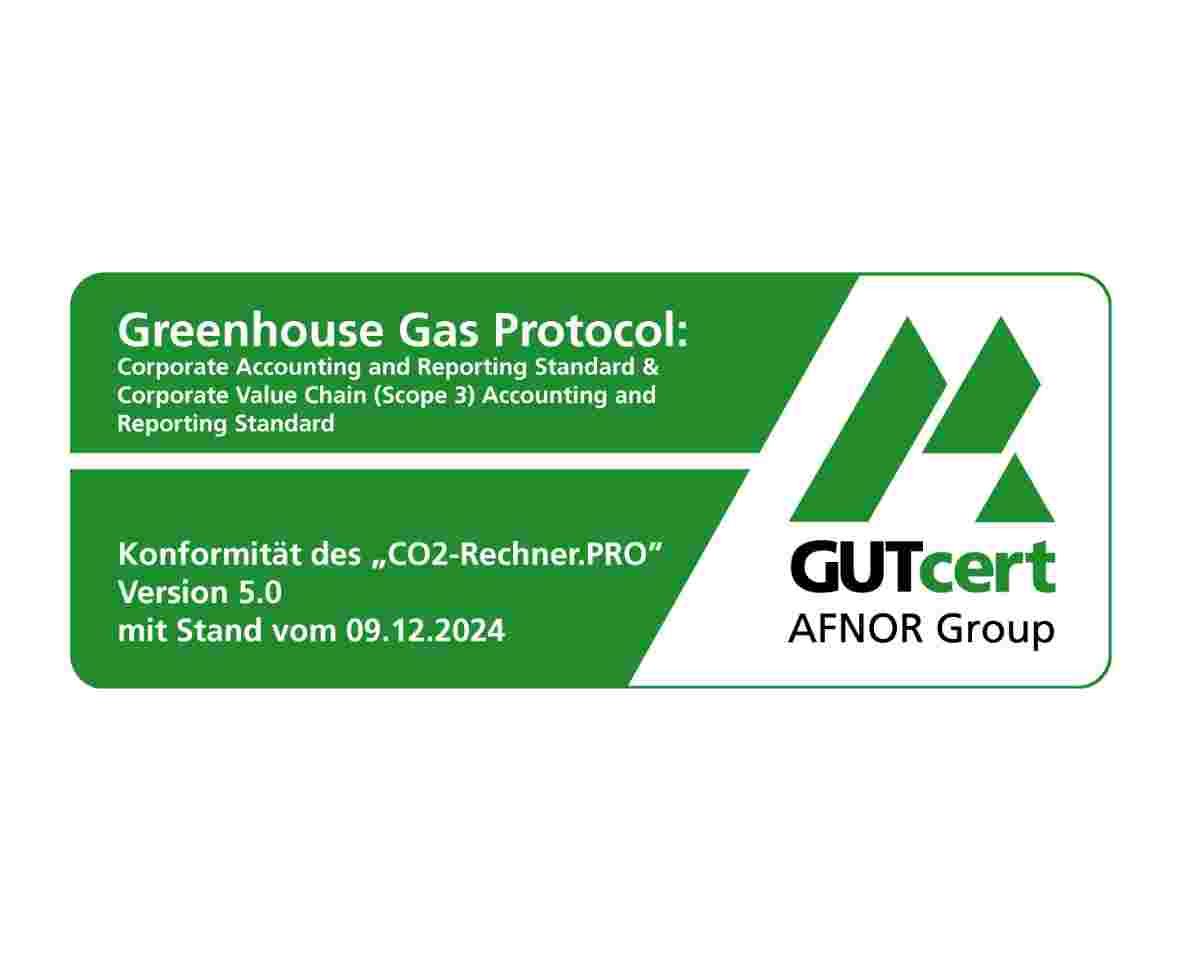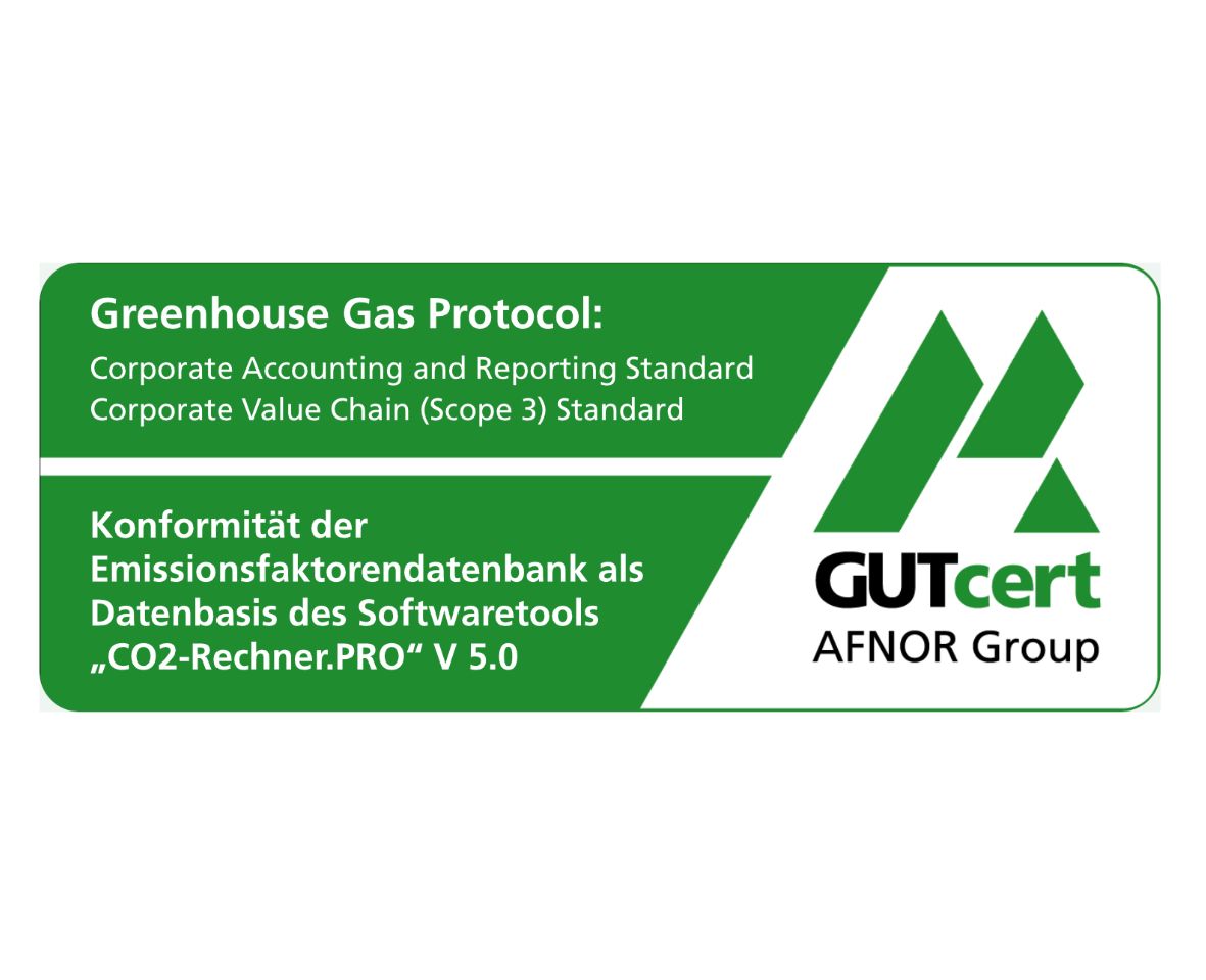 Mit GUTcert-zertifizierter Konformität der Emissionsfaktorendatenbank