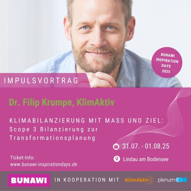 Die BUNAWI INSPIRATION DAYS finden vom 31.07.-01.08.25 statt. Wir haben mit Armin Hipper darüber gesprochen, was Nachhaltigkeit im Mittelstand bedeutet, wie die Transformation gelingt und welche Themen 2025 bei den BUNAWI Inspiration Days im Fokus stehen.