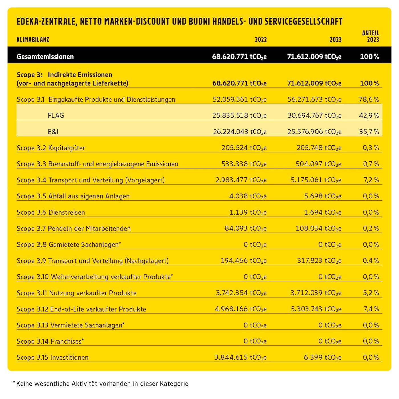 Lieferanten aus verschiedensten Branchen kennen das: eine Nachricht informiert darüber, dass innerhalb einer bestimmten Frist eine Verpflichtung zu SBTi oder Vergleichbarem stattfinden sollte und wissenschaftsbasierte Ziele (SBT) innerhalb einer weiteren Frist vorgelegt werden müssen. So auch bei unserem langjährigen Kunden Bad Dürrheimer Mineralbrunnen GmbH + Co. KG Heilbrunnen. Der Hintergrund ist, dass sich viele große Handelsketten wie Aldi, die Schwarz-Gruppe (u.a. Lidl, Kaufland), REWE, EDEKA, die Otto Gruppe, Obi und weitere (siehe das Target Dashboard der SBTi) zu wissenschaftsbasierten Klimaschutzzielen bei der Science Based Targets Initiative (SBTi) verpflichtet haben. Allen Handelsgesellschaften gemein ist, dass ein Großteil der Emissionen innerhalb der Lieferkette, also in Scope 3, anfallen. Bei EDEKA waren es 2023 beispielsweise 99,4% der Gesamtemissionen. Über ¾ dieser Scope 3 Emissionen stammen von eingekauften Produkten und Dienstleistungen (s. Tabelle unten). Da die Gruppe somit auf die Unterstützung ihrer Lieferanten zur Erreichung der Klimaziele angewiesen ist, hat EDEKA sich bei SBTi dazu verpflichtet, dass ein Großteil der Lieferanten bis 2028 wissenschaftsbasierte Klimaziele bei der Science Based Targets Initiative oder vergleichbare Klimaziele haben werden. Ähnliche Wege gehen auch andere Händler. Viele Lieferanten stellt das vor neue Herausforderungen.