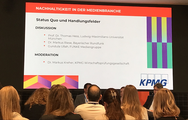 An dem Panel „Nachhaltigkeit in der Medienbranche“ nahm unter anderem der Leiter des ARD-Nachhaltigkeitsboards, Dr. Markus Riese, teil. Er erwähnte die Teilnahme der ARD, vertreten durch den rbb, am Green Streaming Projekt, an dem auch KlimAktiv mitwirkt. Außerdem berichtete er über den Reduktionspfad der ARD und die dazu notwendige Klimabilanz. Im Nachhaltigkeitsbericht der ARD vom November 2023 wird die Reduktionsstrategie kommuniziert, mit der bis 2030 eine 65%ige Reduktion auf das Basisjahr 2019 geplant ist.