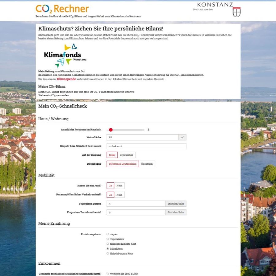 In welchem Lebensbereich verursache ich CO2-Emissionen? Wo stehe ich im Vergleich zum deutschen Durchschnitt? Wo spare ich bereits Emissionen ein? Welche Aktivitäten fallen dabei am meisten ins Gewicht? Wie ist zum Beispiel die grüne Geldanlage oder die Solaranlage aus Klimaschutzsicht zu bewerten? Was kann ich zukünftig dem Klima Gutes tun, wenn ich vom Auto auf das Fahrrad umsteige?