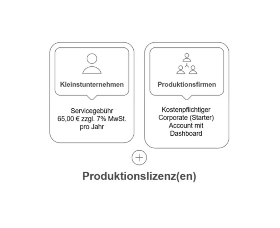 Kleinstunternehmen mit nur wenigen Beschäftigten können ebenfalls von der Option profitieren, statt eines Corporate Starter Accounts lediglich die günstige jährliche Servicegebühr von 65 Euro plus Produktionslizenzen zu zahlen.